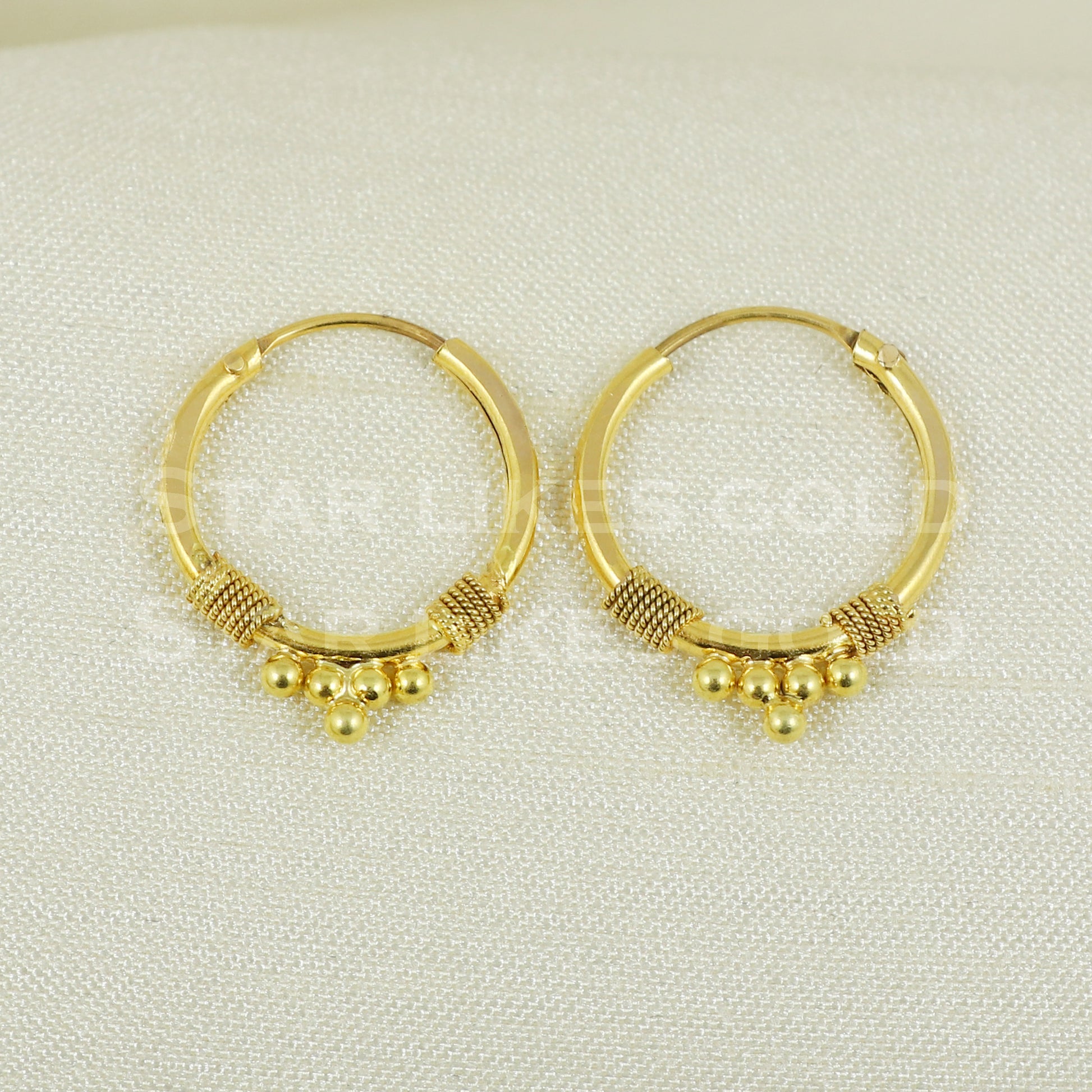 18 karat 18k gold bali hoop earrings B1131