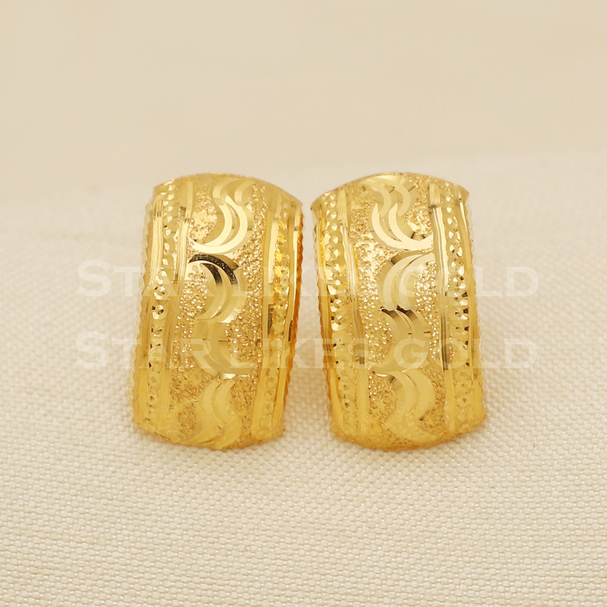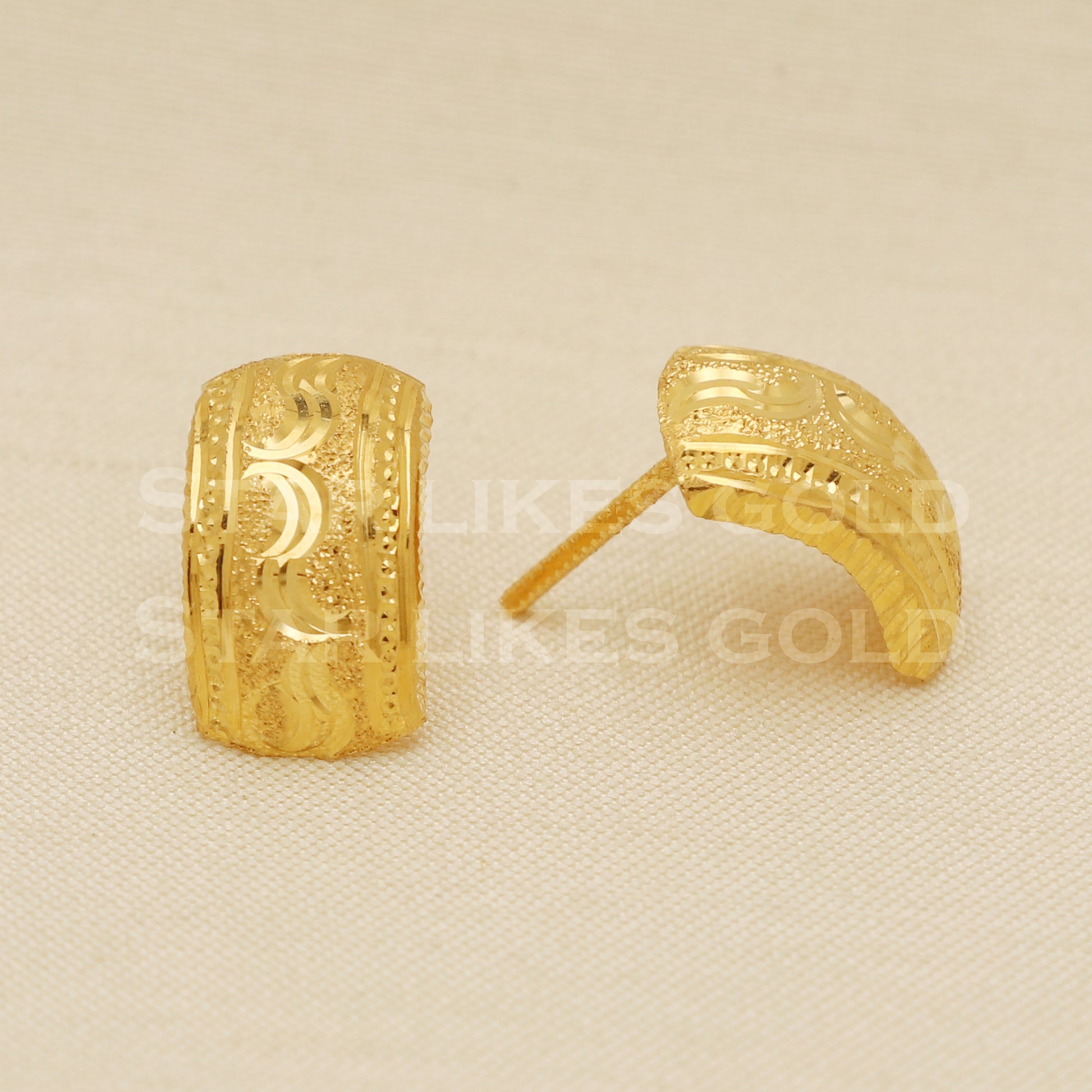 Elevate your style with these beautifully handcrafted gold earrings. Featuring a classic design and a comfortable fit, they add a refined touch to any look. Ideal for everyday wear or special occasions, they bring a subtle yet sophisticated sparkle.