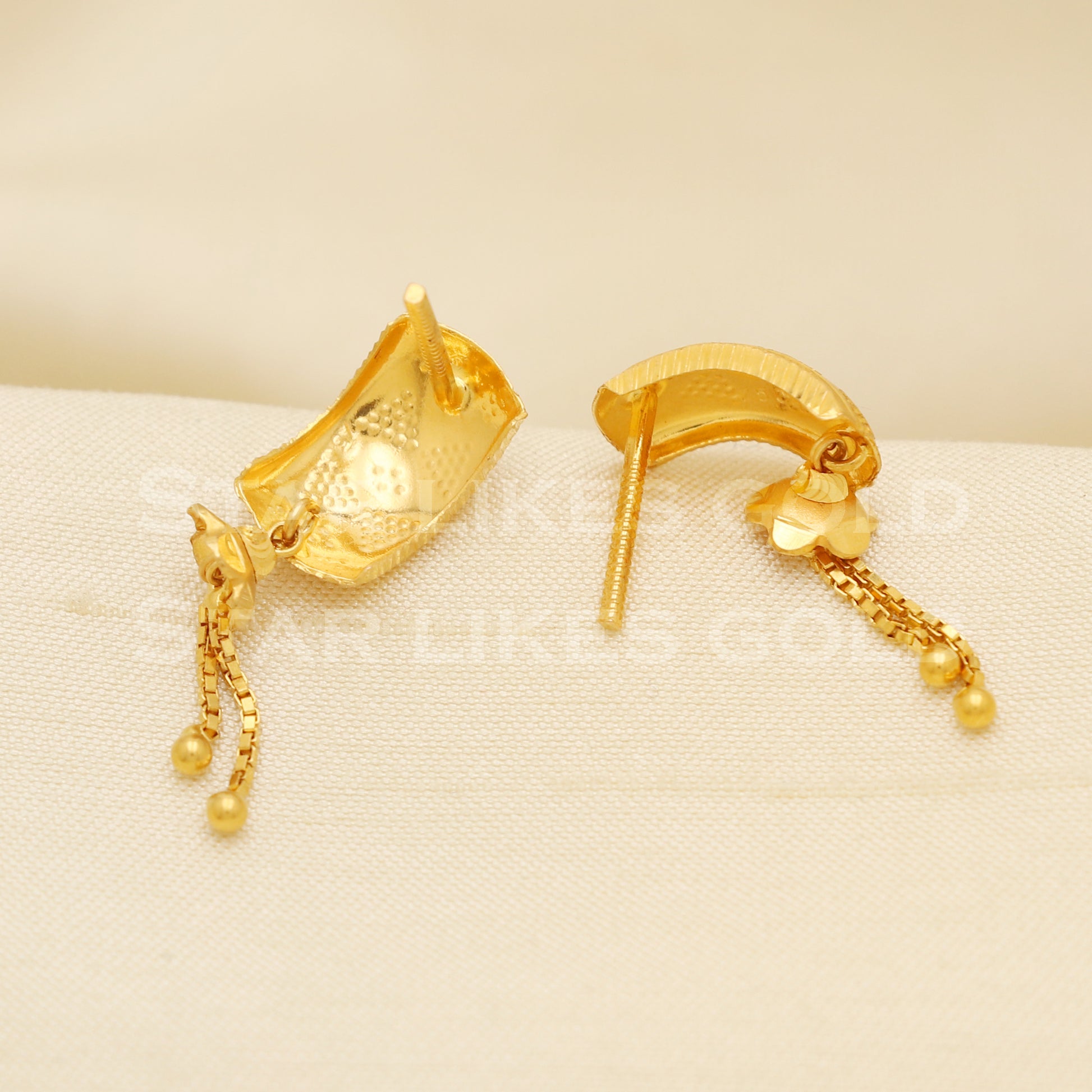 Elevate your style with these beautifully handcrafted gold earrings. Featuring a classic design and a comfortable fit, they add a refined touch to any look. Ideal for everyday wear or special occasions, they bring a subtle yet sophisticated sparkle.