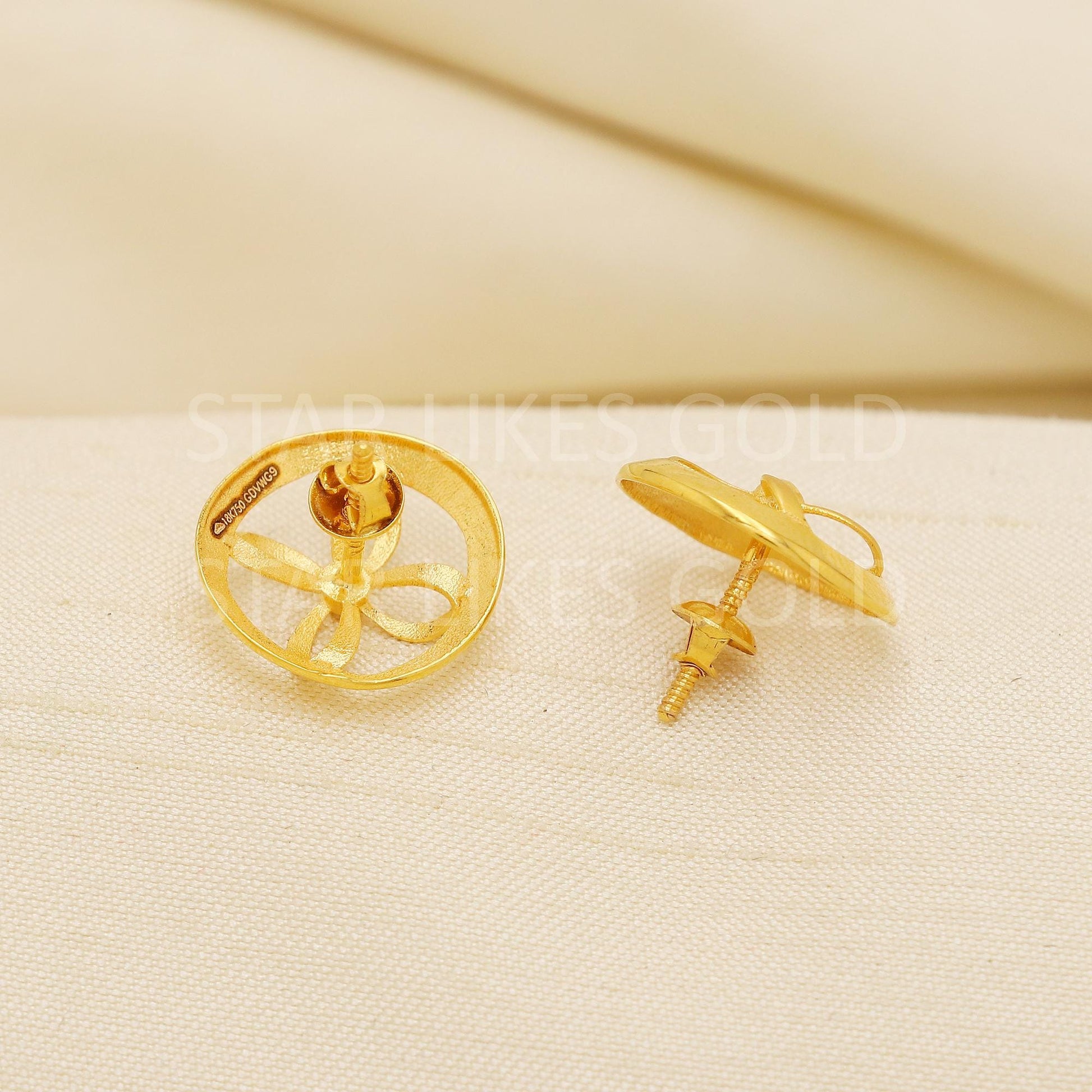 18K Gold Leaf Stud Earrings Secure Screw Back Romantic Jewelry, PR2183