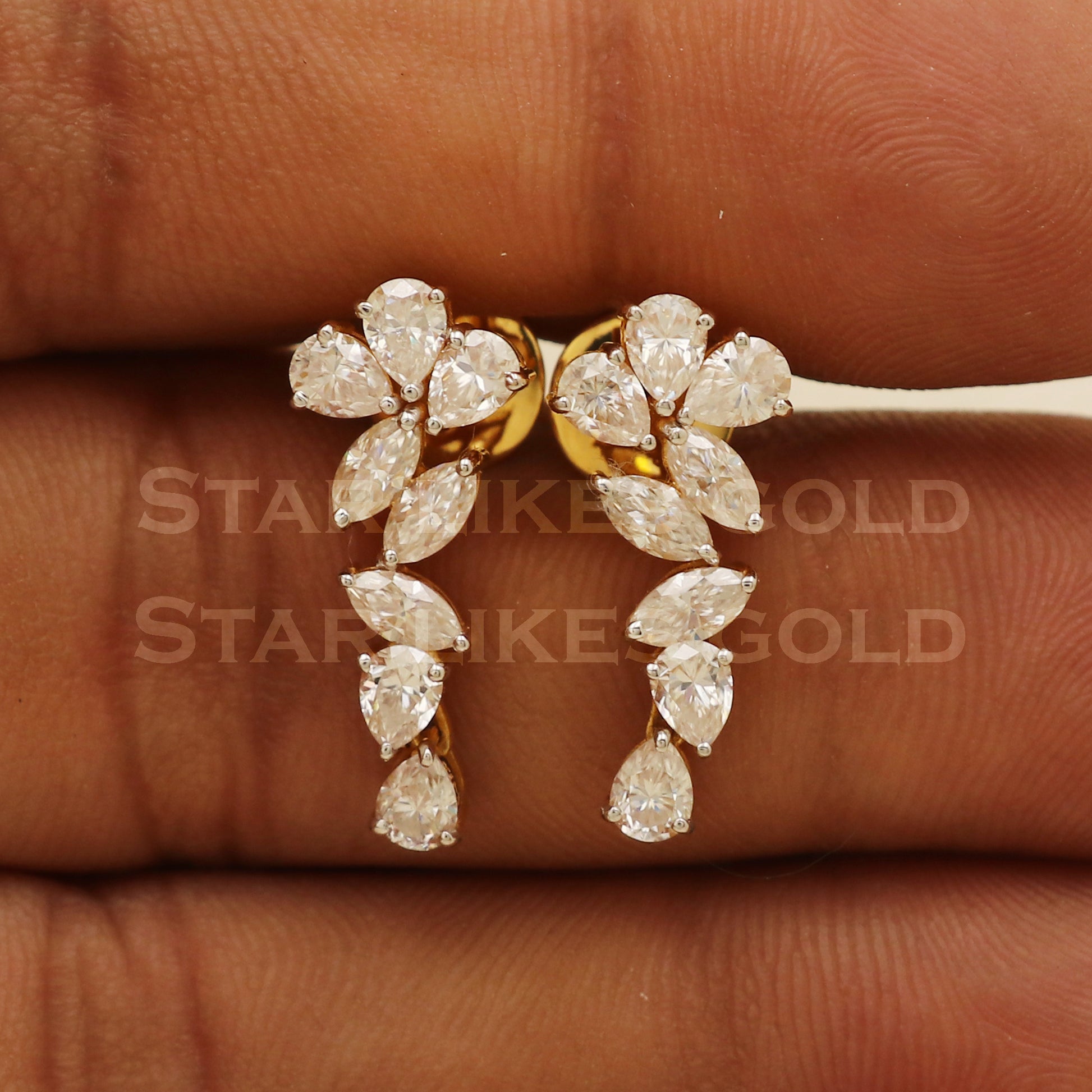 Moissanite 18k 18 karat gold stud earrings jewelry, PR1106