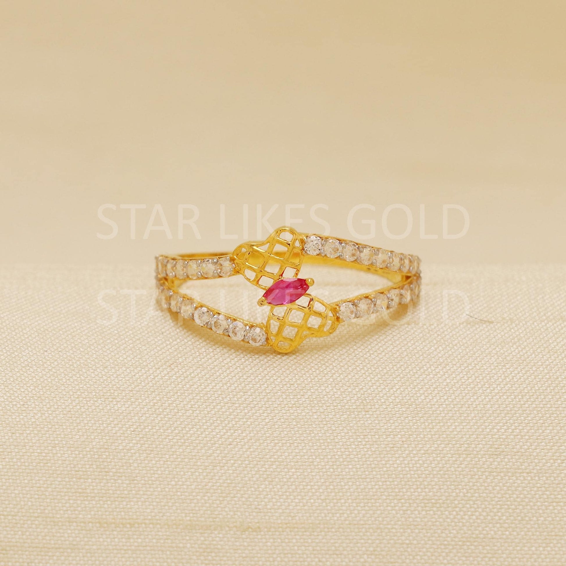 Butterfly Zircon 18 karat 18k Gold Indian Ring Handmade Jewelry