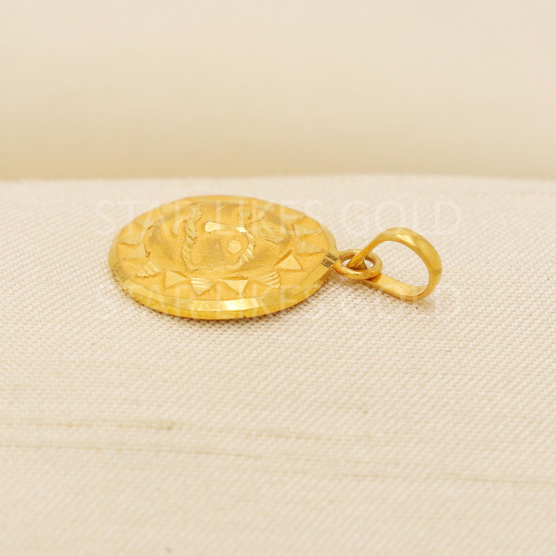 22K 916 Hallmark Handmade Gold Surya Dev Round Pendant, PR2126