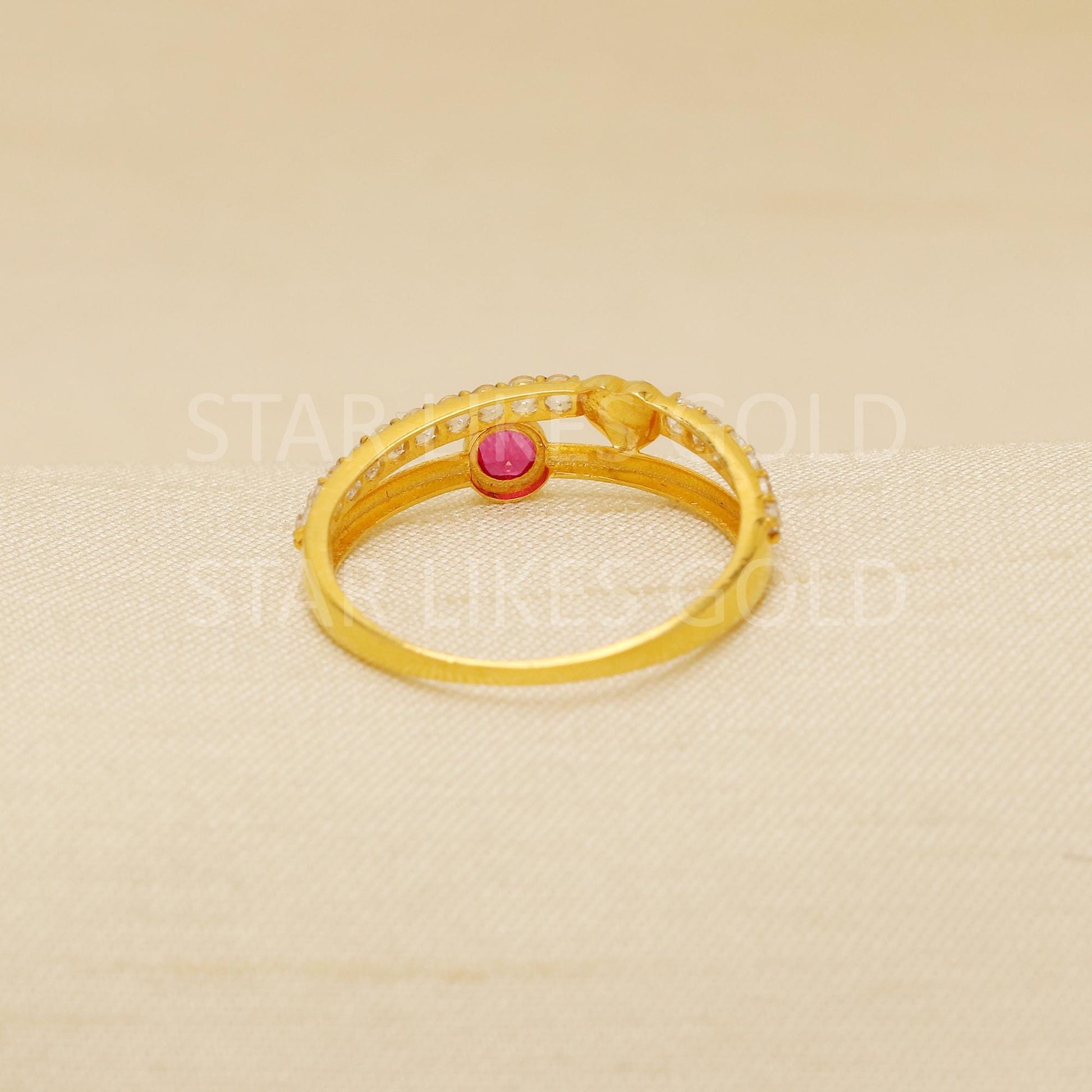 Heart American Diamond and pink stone 18 karat 18k Gold Indian Ring Jewelry for gift, Statement Gold Women Ring