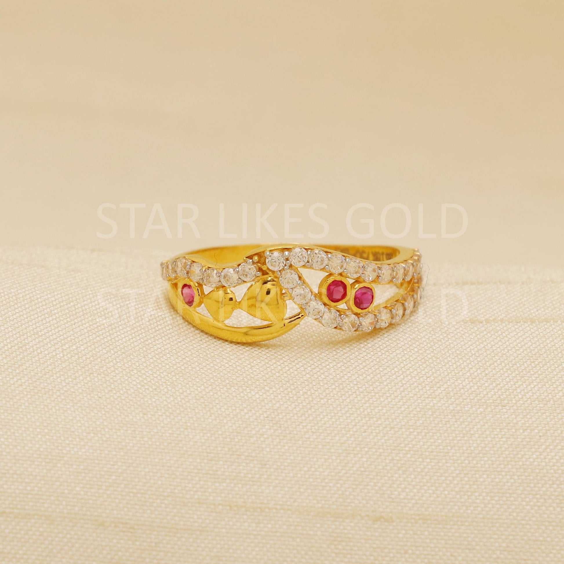 Heart Pink White Zircon 18 karat 18k Gold Indian Ring Jewelry for gift, Statement Gold Women Ring