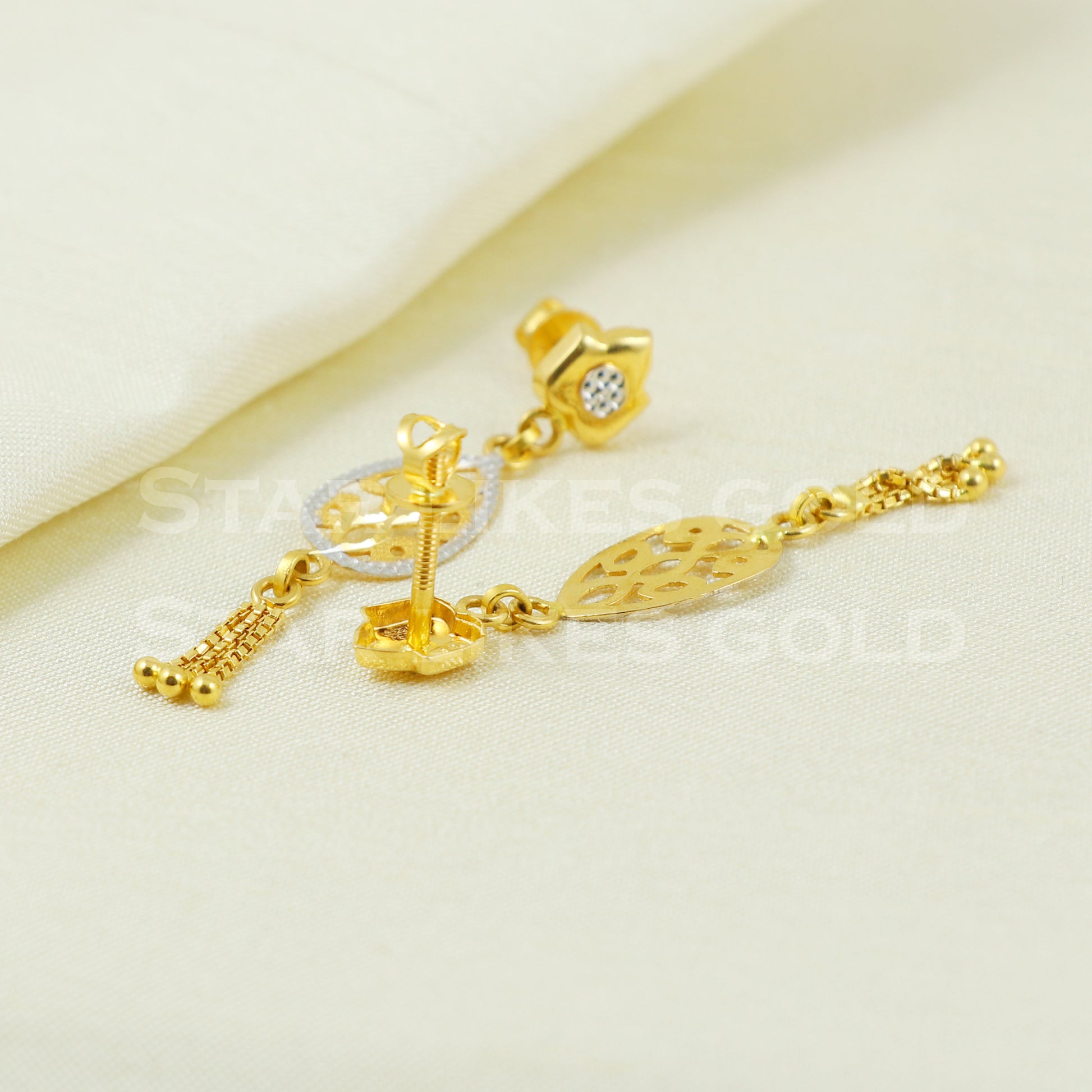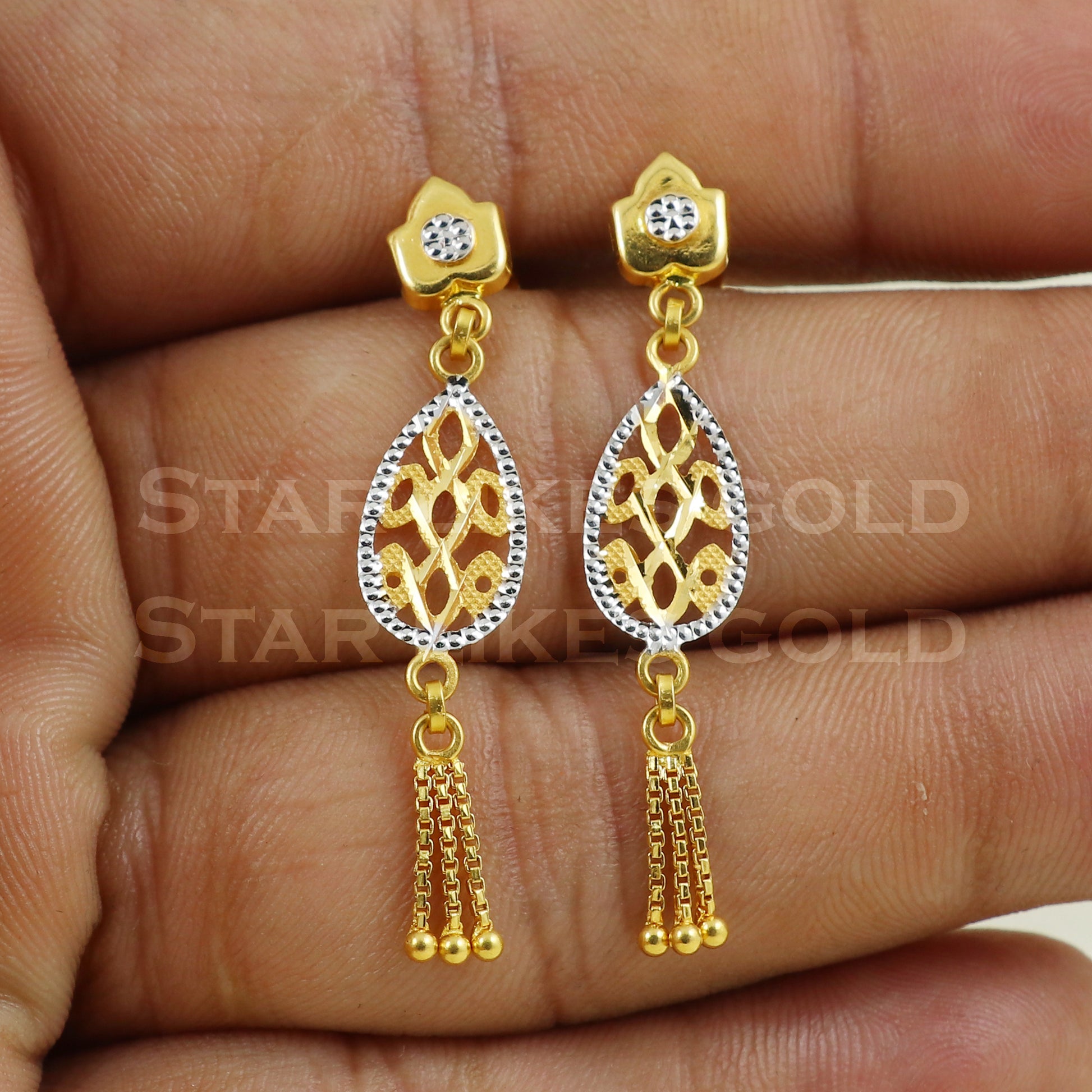 18 karat 18k gold dangle earrings jewelry, B1176